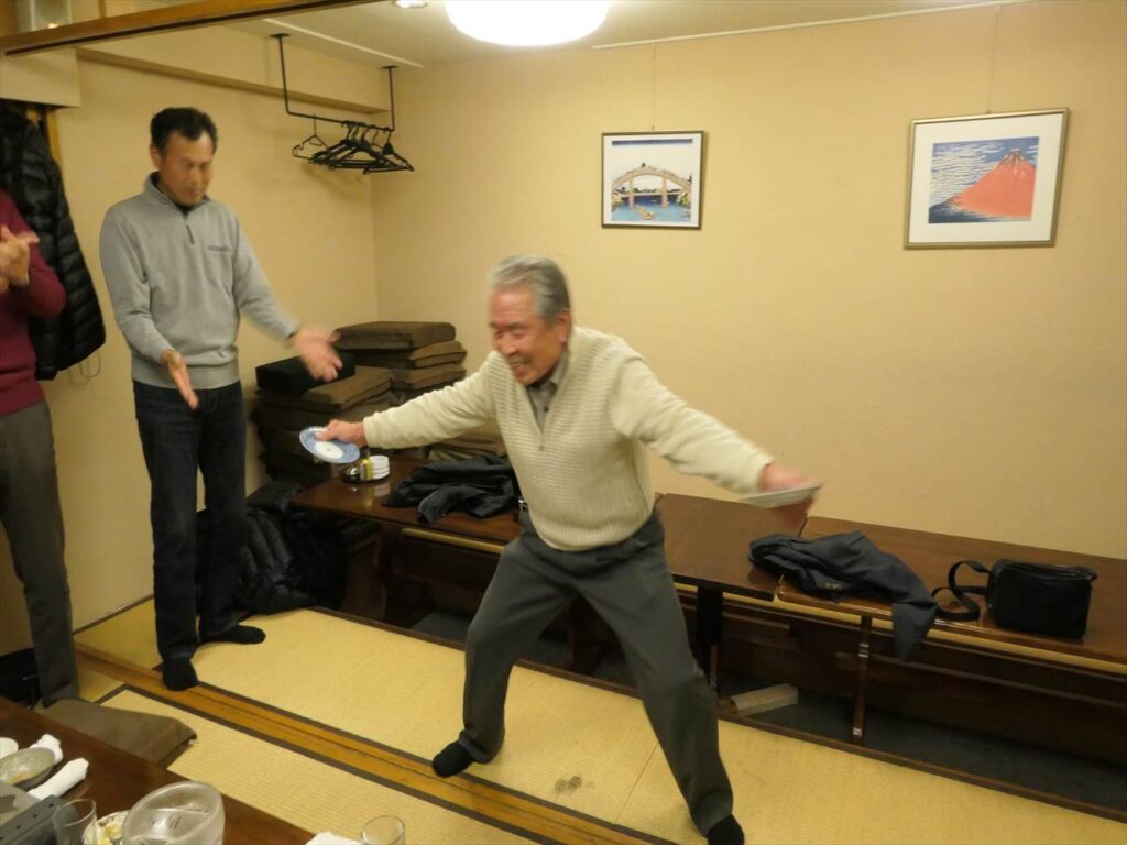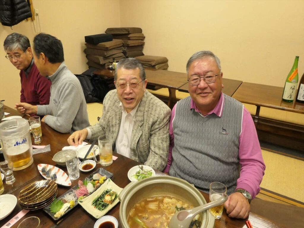 24日の女子駅伝優勝決起大会も兼ねての実施となり、本部の遠藤副会長様の乾杯のご発声により懇親会がスタート。今回はお店のご厚意で有名ブランドの日本酒(獺祭 他)も多数提供され、いつもながら飲むこと飲むこと、会員の皆様大いに食べて飲んで年忘れと決起大会を楽しまれました。