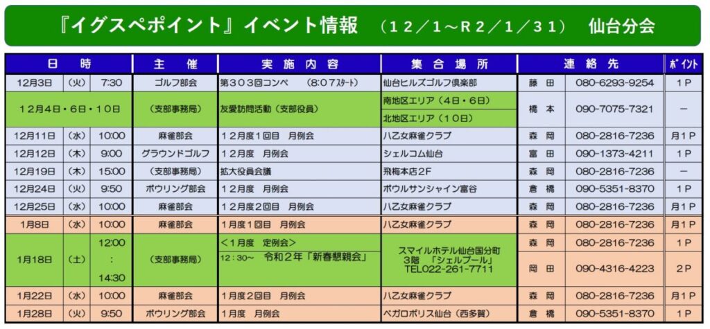 各行事に積極的に参加して「イグスペポイント」をためましょう!!