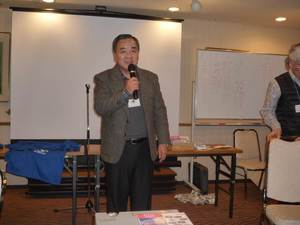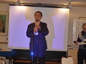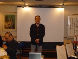 例会の部では浜本支部長のご挨拶と特に義援金にまつわる御礼、及びそのご報告をいただきました。