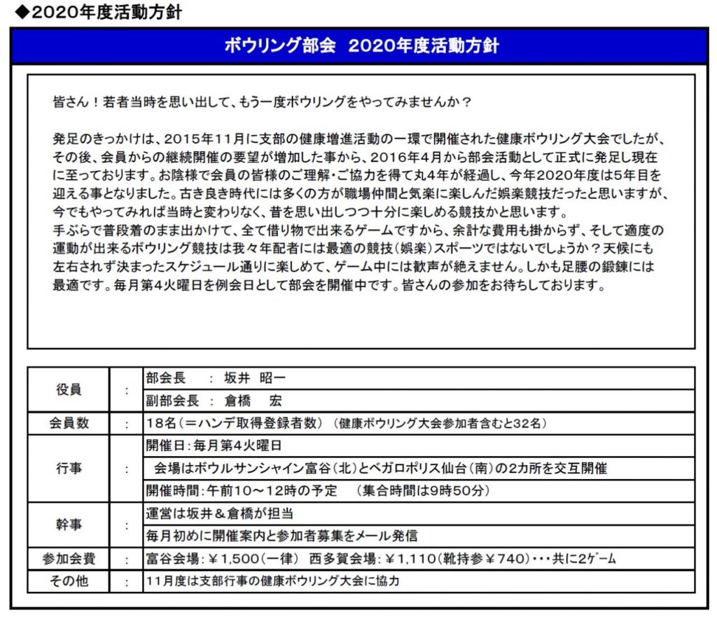 | 2月 | 23日(火) | 中止 ボウルサンシャイン富谷(部会月例会) | |