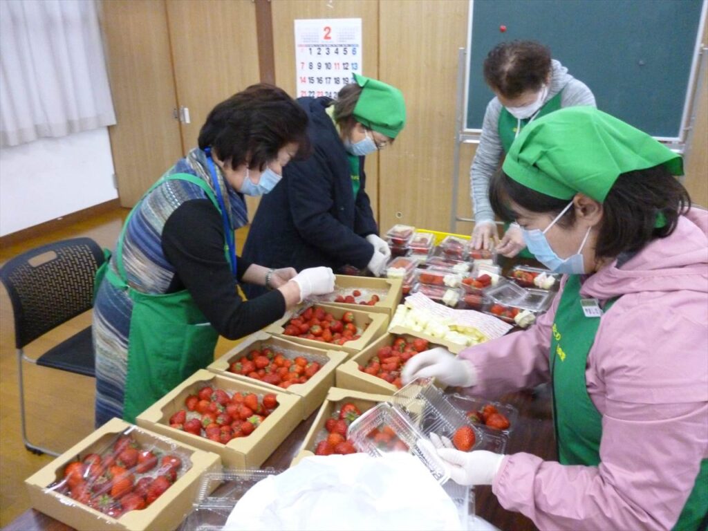 今は会場での調理が出来ませんのでフードバンク方式(地域の企業、個人の寄付)で主食、副食、飲み物、おやつを好みで選んでパックにして持ち帰る方法です。