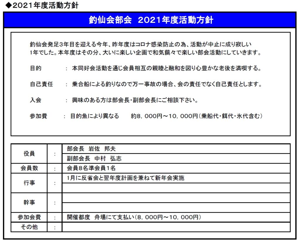 | 5月 | 天候にて | 根回り五目 | 中止 |