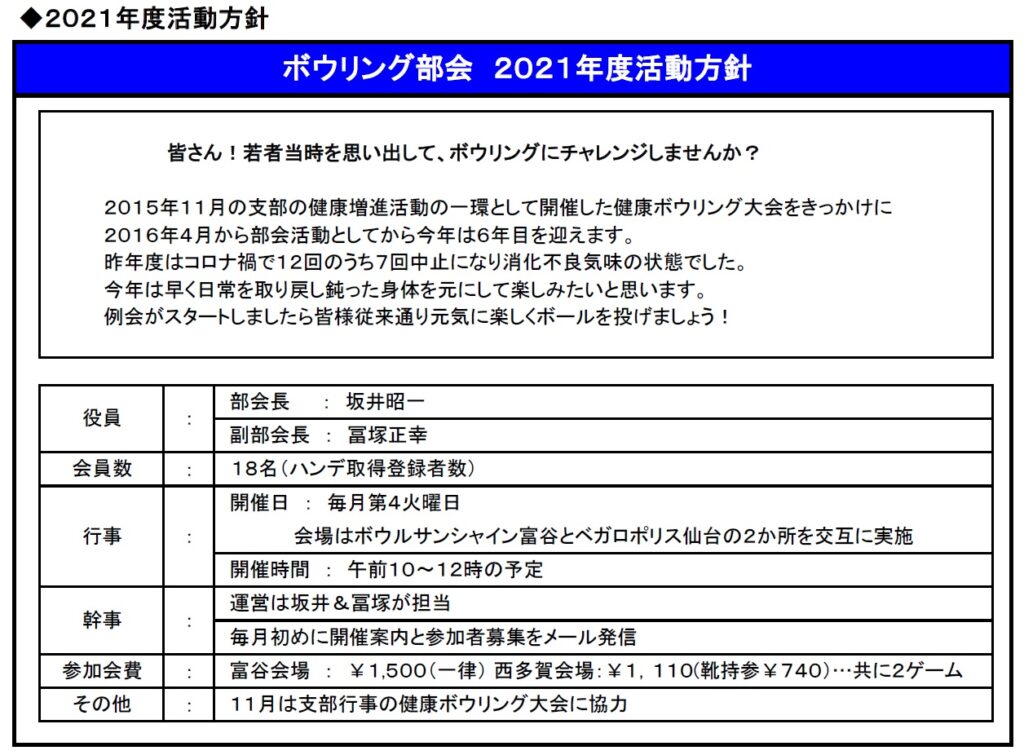 | 2月 | 22日(火) | ボウルサンシャイン富谷(部会月例会) | |
