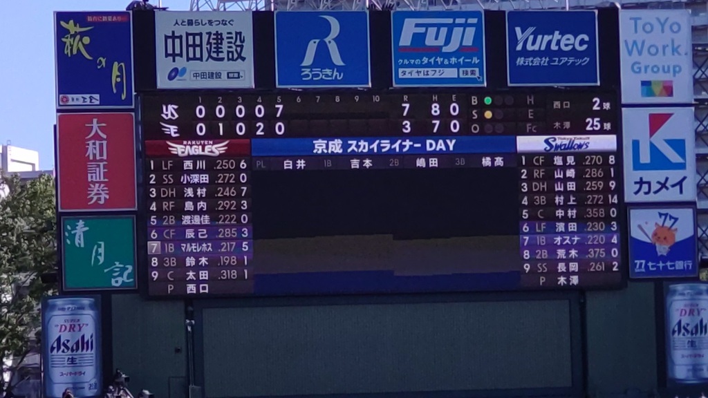 以降は楽天の投手陣が精彩を欠いて、今季ワーストの11点失点で逆転負け! ホームゲームで7連敗! 18の貯金が10に減りました!