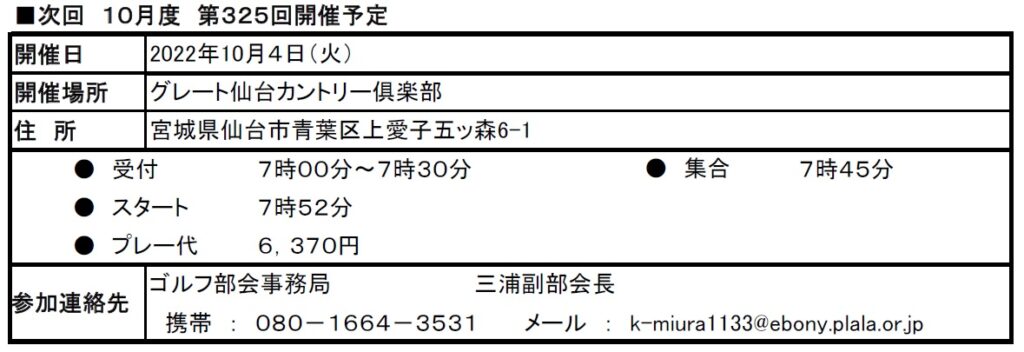 仙台分会ゴルフ部会の9月度例会は、仙台市西部に位置する『西仙台カントリークラブ』で開催しました。