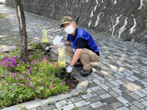 社会貢献部会 山形工場西側 「 松葉菊 」植付け