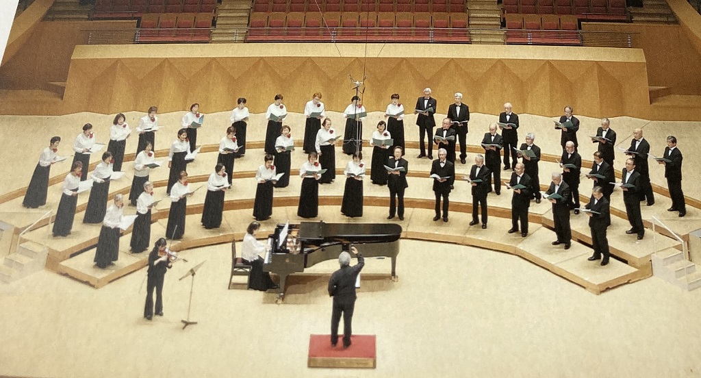 郡山市の高齢者大学である「あさかの学園大学」に入学後、クラブ活動として混声合唱団に加入して6年になります。郡山市は平成20年に音楽都市として宣言し、様々なコンサートが開催されており、自分でも舞台に立ってみたいと思うようになりました。音大出身者の指導の下、約70名が月に2回の練習をし、市民音楽祭など年に数回発表する機会があります。