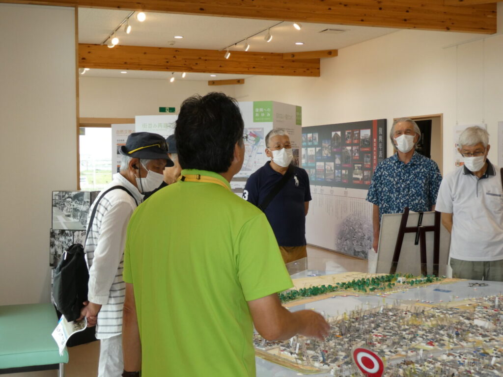 次に、2020年に開設した名取市震災復興伝承館で、震災以前の閖上の街のジオラマや防災教育の展示などを見学しました。