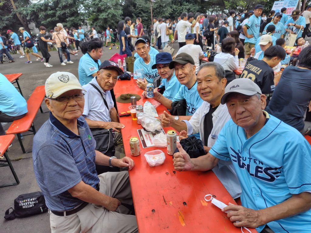 球場に入る前の恒例となった「缶ビール懇談会」は 楽天のせめて3位・Aクラス入りになるには・・・に話しが弾みました。その後 海の向こうの毎日記録を塗り替えている大谷選手(8/31:43本塁打43盗塁 達成)の話題に話が展開しました。