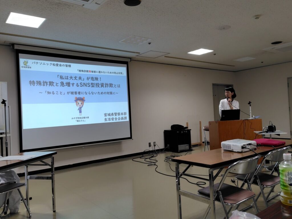 例会前に宮城県警生活安全課にお願いし、近年の高齢者が掛かり易い詐欺の実態を講演頂き、会員が詐欺に騙されないよう、被害にあわない様にを目的にセミナーを開催。