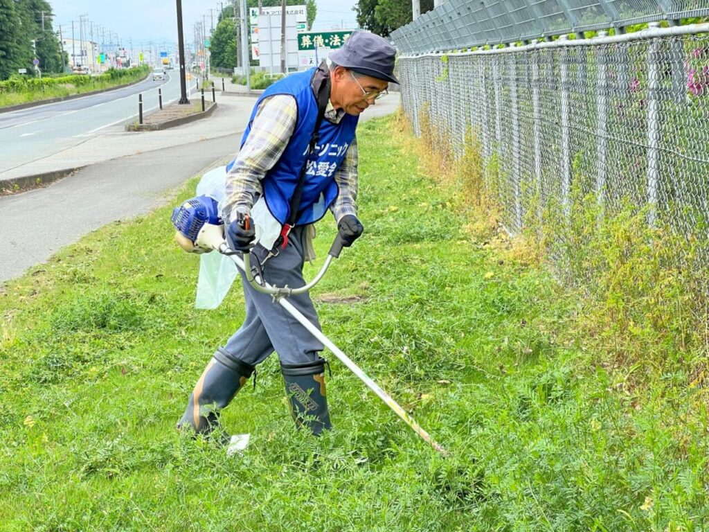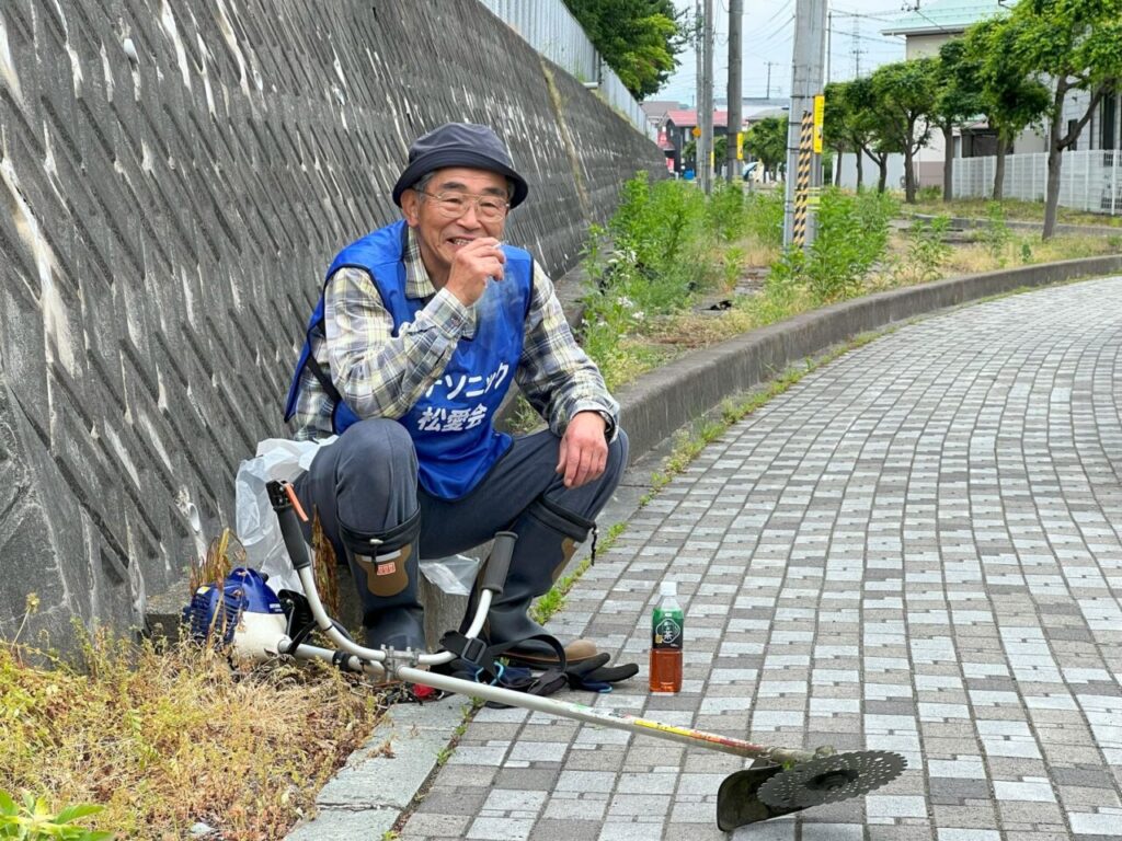 例年になく街路樹下の花壇が雑草に覆われていましたが、昨年入会の松浦さん渡辺さんの初参加の協力を頂くと共に、山形工場人事課の今崎課長も積極的に参加して頂きお茶の差し入れまで頂きました。『ありがとうございました。』