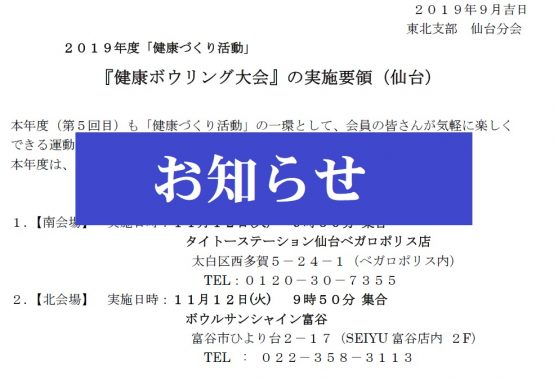 仙台 健康ボウリング大会のご案内 開催日2019.11.12