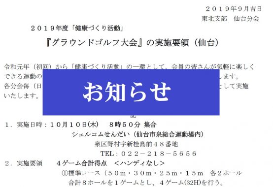 仙台 「グラウンドゴルフ大会」実施のお知らせ 開催日 2019.10…
