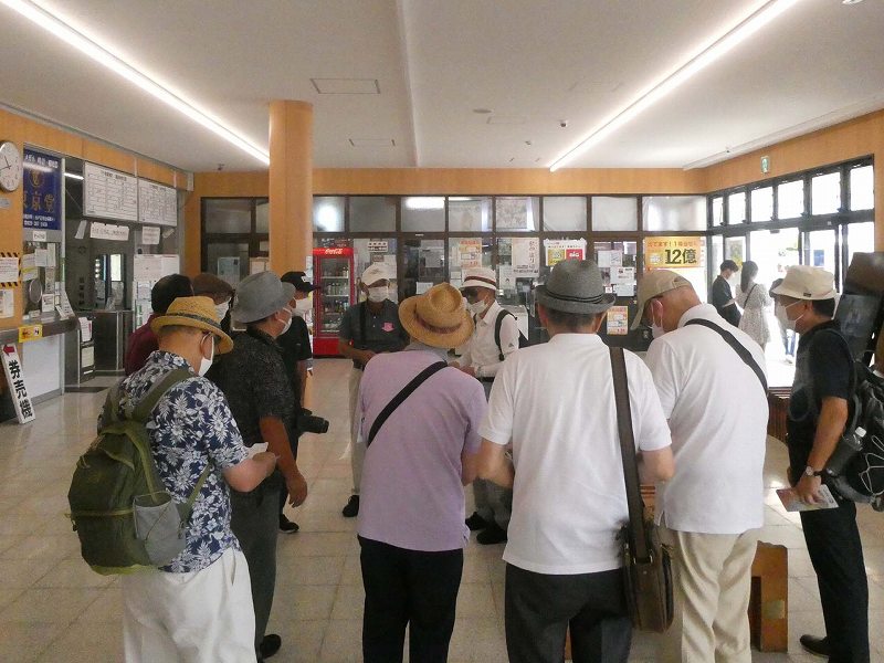 - 大洗駅で幹事の中山さんより本日のスケジュール説明