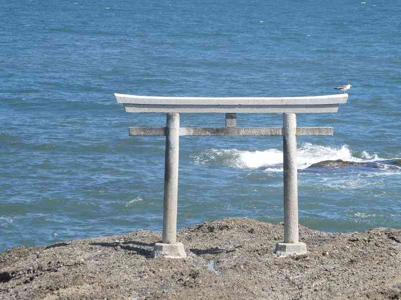 入口正面の大きな窓(額ブチ様)から名勝大洗海岸の中でも特に日の出の美しさで知られる神磯の鳥居が見える小さい美術館です。現在は中国の硯(古代)や渋沢栄一の四男渋沢秀雄の水彩画や木版画や押し絵等も展示されています。 |