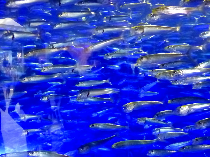 - 入ってすぐの水槽がいわしの大群で歓迎
