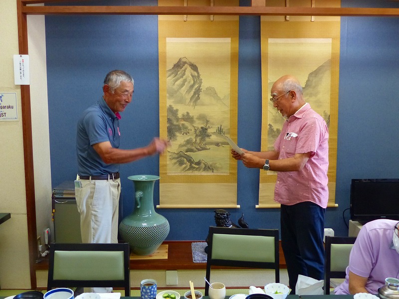 - 当会自慢の「目に見えぬか賞」15号を大島会員に