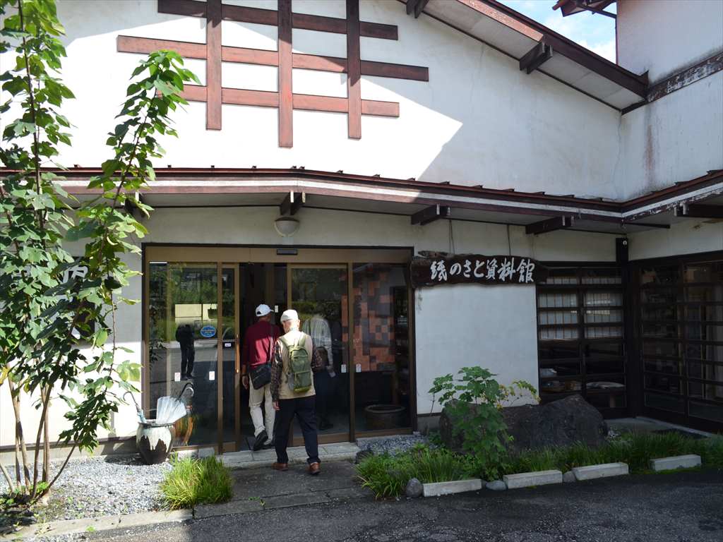 - 歩くとすぐに、本日お楽しみ和紙に漉(す)き絵の施設に到着。