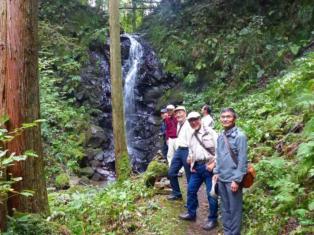 地元の人達が五穀豊穣と家内安全を祈念していた高さ10mほどの小さな滝です。真っ黒い墨書石の岩肌を舞い落ちる白い飛沫は見ものでした。
