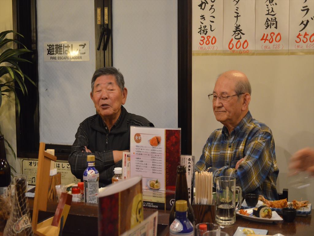 また、カラオケ終了後は居酒屋「いこい」に移動し、忘年会のみの参加者1名を加えて、この1年のお互いの慰労と歓談+豪華な料理とお酒で大いに盛り上がりました。