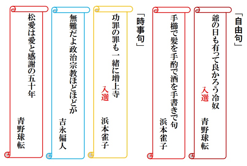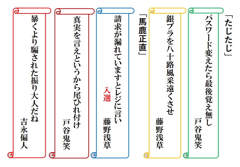 句 題 「馬鹿正直」・「たじたじ」・「時事句」・「自由句」