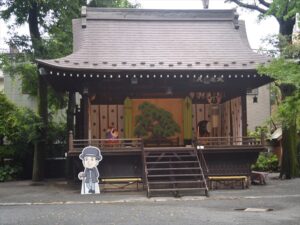 ⑩「七社神社」七社の神々が祀られており江戸時代までは無量寺の境内(現在は旧古河庭園内)にありましたが、明治2年に現在の地に移りました。旧西ヶ原村の総鎮守で、渋沢栄一が飛鳥山の一角に別荘を構えたころから氏子となり、拝殿や社務所兼会堂の建設に寄与。現在も渋沢栄一揮毫の社額が掛け軸等が収められています。ちょうど、「茅の輪くぐり」が設置されており、輪をくぐることによって知らず知らずについた穢れを祓うことが出来るということです。