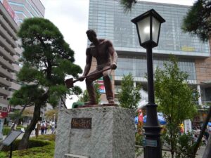 2.「キューポラ広場」にある(キューポラのオブジェをバックに記念写真)