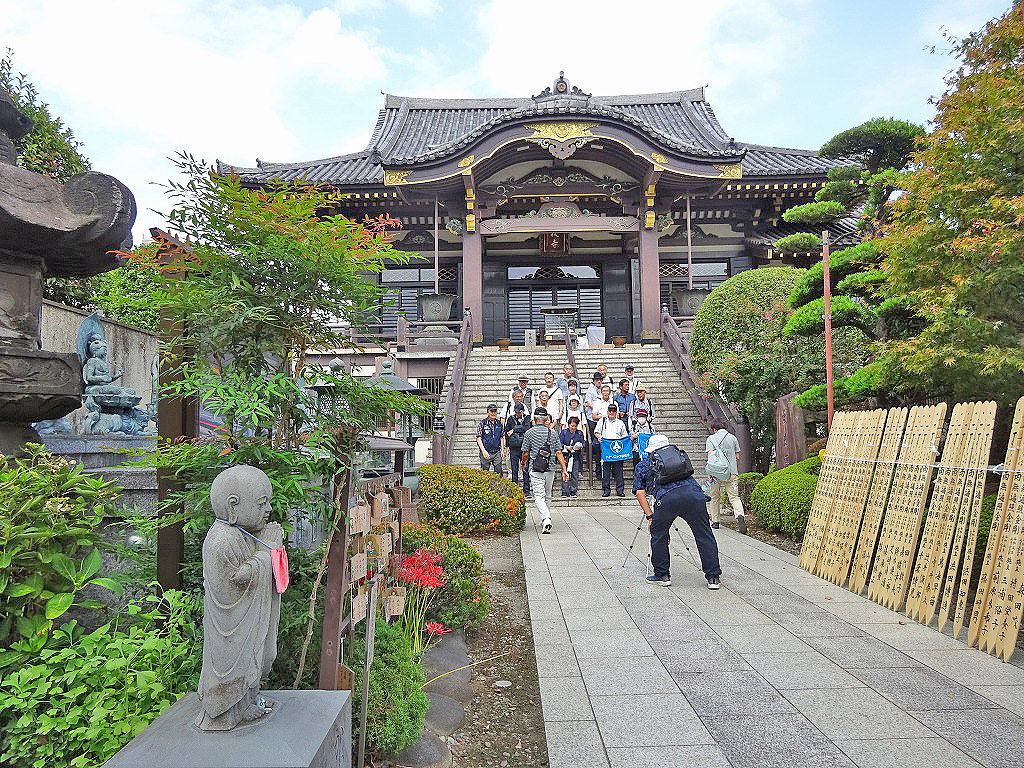 真言宗智山派の寺院。元和8年(1622年)江戸幕府2代将軍徳川秀忠は日光社参の休息所といて当寺を定め徳川家と深い関わりを持つことになります。(本堂をバックに記念写真)