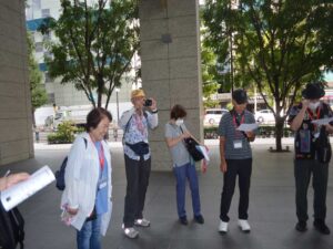 今回は東京メトロ銀座線「虎ノ門」駅のグローバルスクエア前に会員22名(初参加1名含む)が集合。担当より本日の主なコースを説明して、10時40分頃のスタートとなりました。(名札を配布)