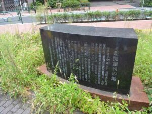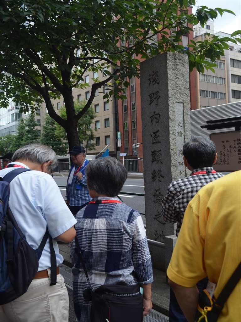 ⑥ 「浅野内匠頭終焉の地」港区新橋4丁目の日比谷通り沿いに石碑があります。ここは陸奥一関藩主・田村建顕の上屋敷のあった場所で、浅野内匠頭が切腹した場所です。吉良上野介を江戸城内で切り付けた後、その日のうちに切腹となりました。切腹最中で有名な「新正堂」の移転した店舗も確認。昔、お詫びの手土産に利用していたこと思い出しました。