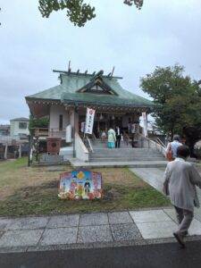 ① 【豊受神社】1157年(保元2年)の創建で浦安最古の神社。祭神は、豊受姫大神。現在の社殿は1974年(昭和49年)に建てられたものである。境内には御神木の樹齢400年の大銀杏があります。ここでしばし休憩(社殿前にて記念写真)