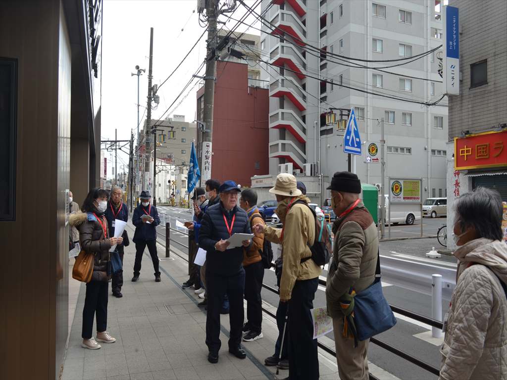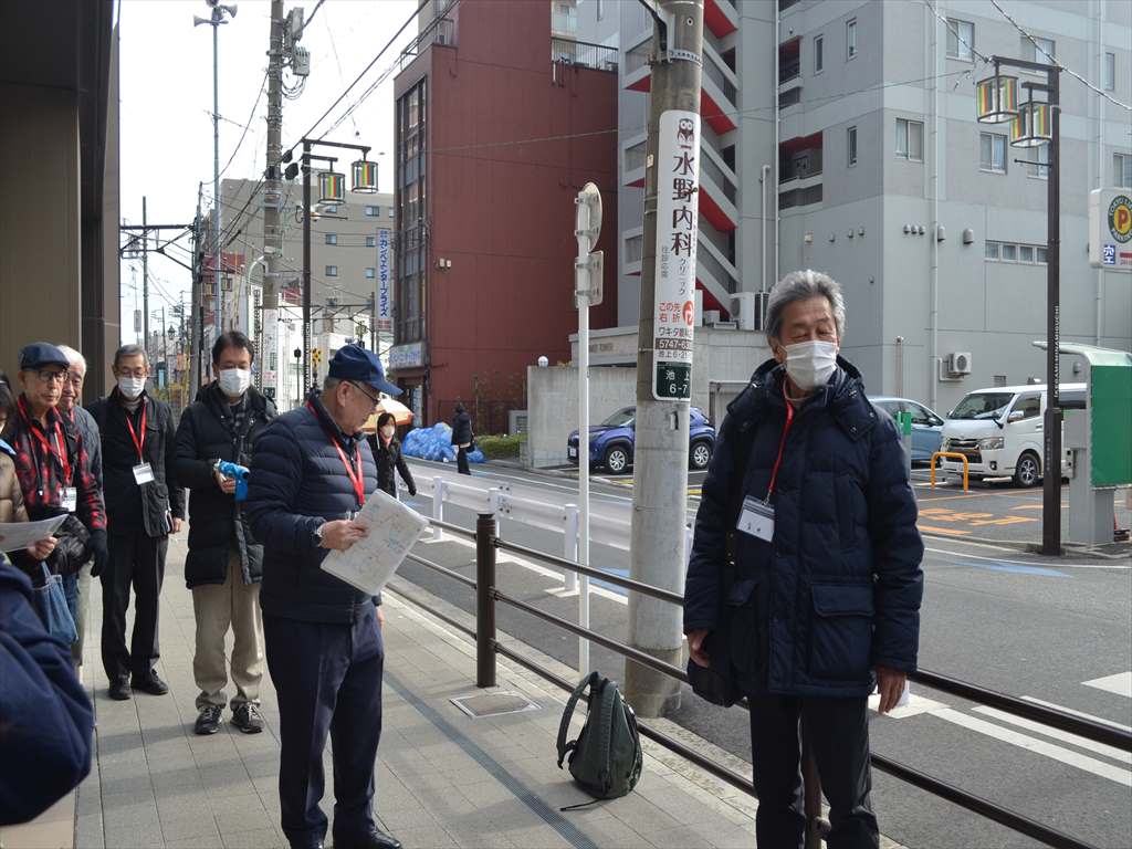 年頭にあたり東京都支部・笠井副支部長のご挨拶の後、担当より本日の主なコースを説明して、10時40分頃スタートしました。池上駅南口を出て 南へ歩きます。