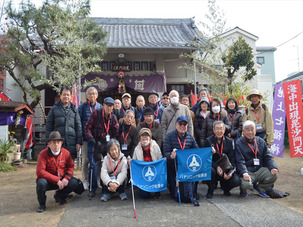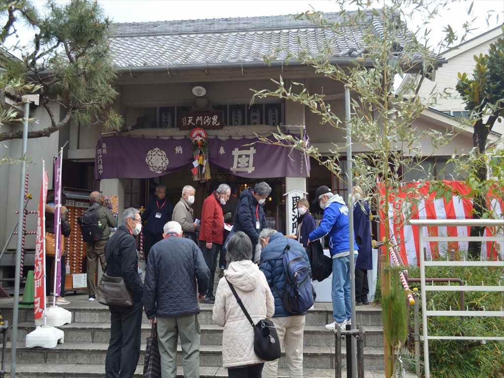 ② 【微妙庵】(毘沙門天)1689年(元禄2年)安詳寺第二世教善院日悟法師が小原七郎左エ門から土地の寄進を受け、教善坊の建立を初とします。1751年(宝暦年中)に蓮沼近くから現在の地に移転し、微妙庵と改称。池上七福神の一つに数えられる毘沙門天がお祀りされているお堂で、厄除けと学問の神であり、その摩訶不思議な縁起もあって近隣は元より古くから多くの信仰を集めています。(境内で記念写真)しばらく北西へ歩きます 第二京浜を渡り、しばらく北西に進みます