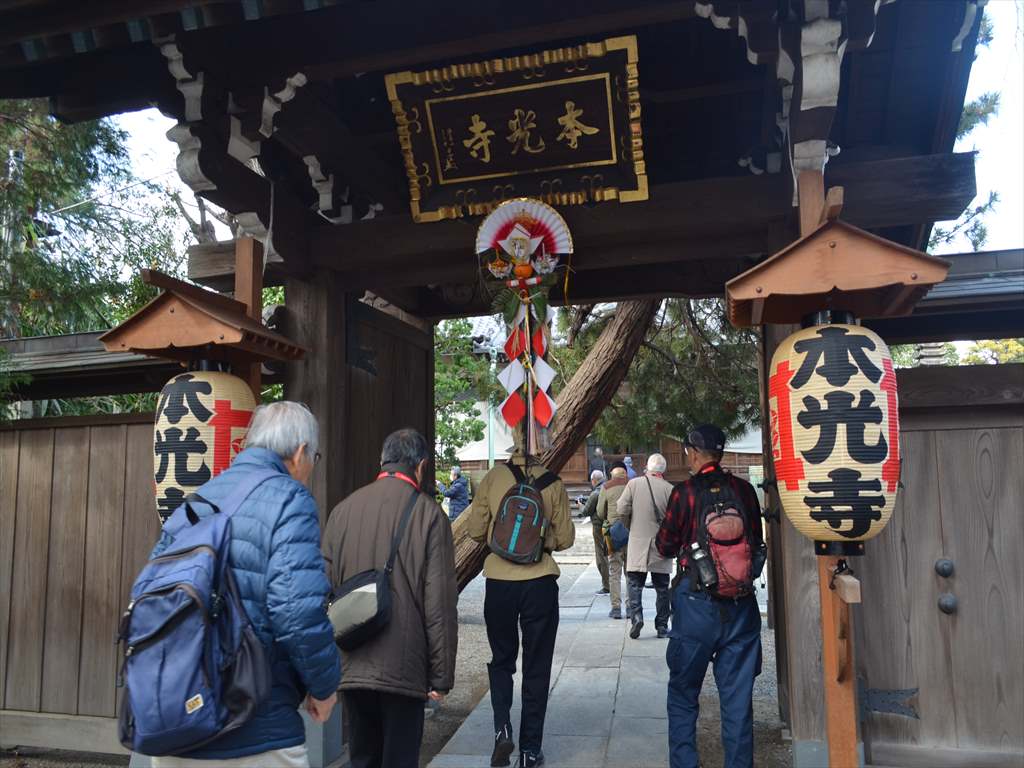 ③ 【本光寺】(大黒天)戦国時代末期から江戸時代初期にかけて、十乗院日能によって開山された。境内には七面堂があり、七面天女像が安置されている。この七面天女像は1699年(元禄12年)に紀州徳川家から寄進されたものといわれている。(境内にて記念写真)東へしばらく歩き 第二京浜を超え 南東しばらく歩きます