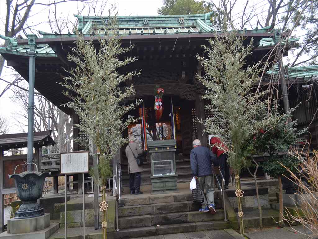 ⑤ 【妙見堂】(寿老人)妙見大菩薩を奉安するお堂。1866年(慶応2年)の再建で、明治時代に増築が行われた。小さなお堂ですが銅板の屋根と欅の柱のバランスが大変よくできているといわれています。階段を下り 呑川沿いを東へ歩きます