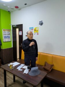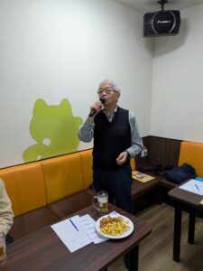 今月より世話役が、川上さんから山田さんに変更となりました。初めに山田より新会則(案)の提示・説明をさせていただき、参加の皆様には賛同いただきました。(欠席の方にはメール等で連絡させていただきます)
