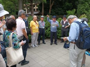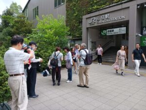JR山手線「原宿」駅 西口に19名の会員が集合 (名札配布)、担当より本日のコース概要を説明して、10時35分頃にスタートしました。