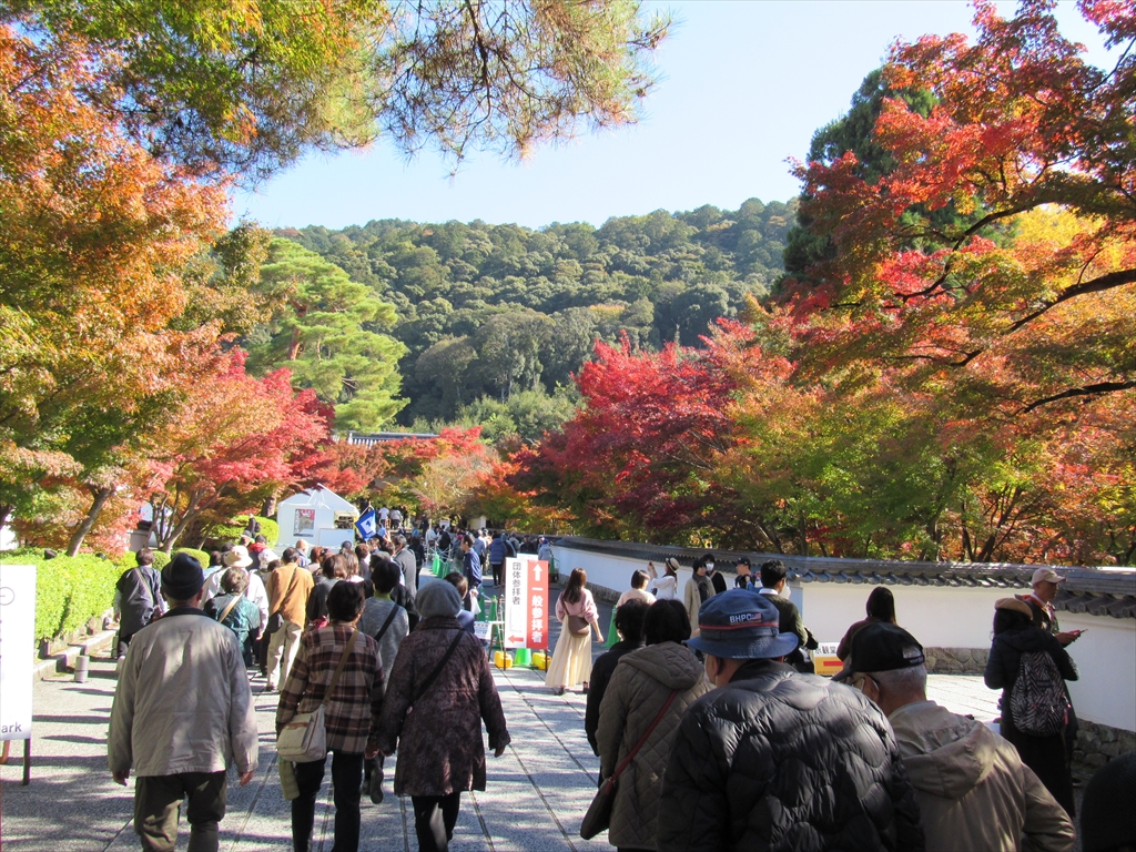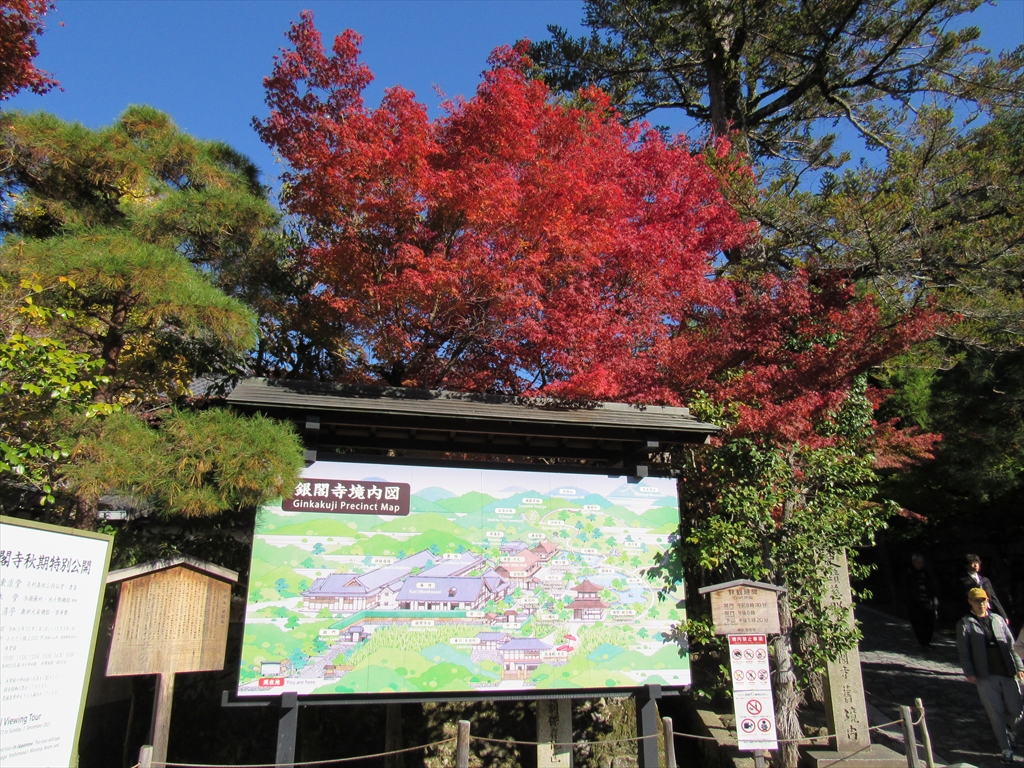 銀閣寺では修学旅行生、外国人も多く、皆さん紅葉を楽しんでおられました。