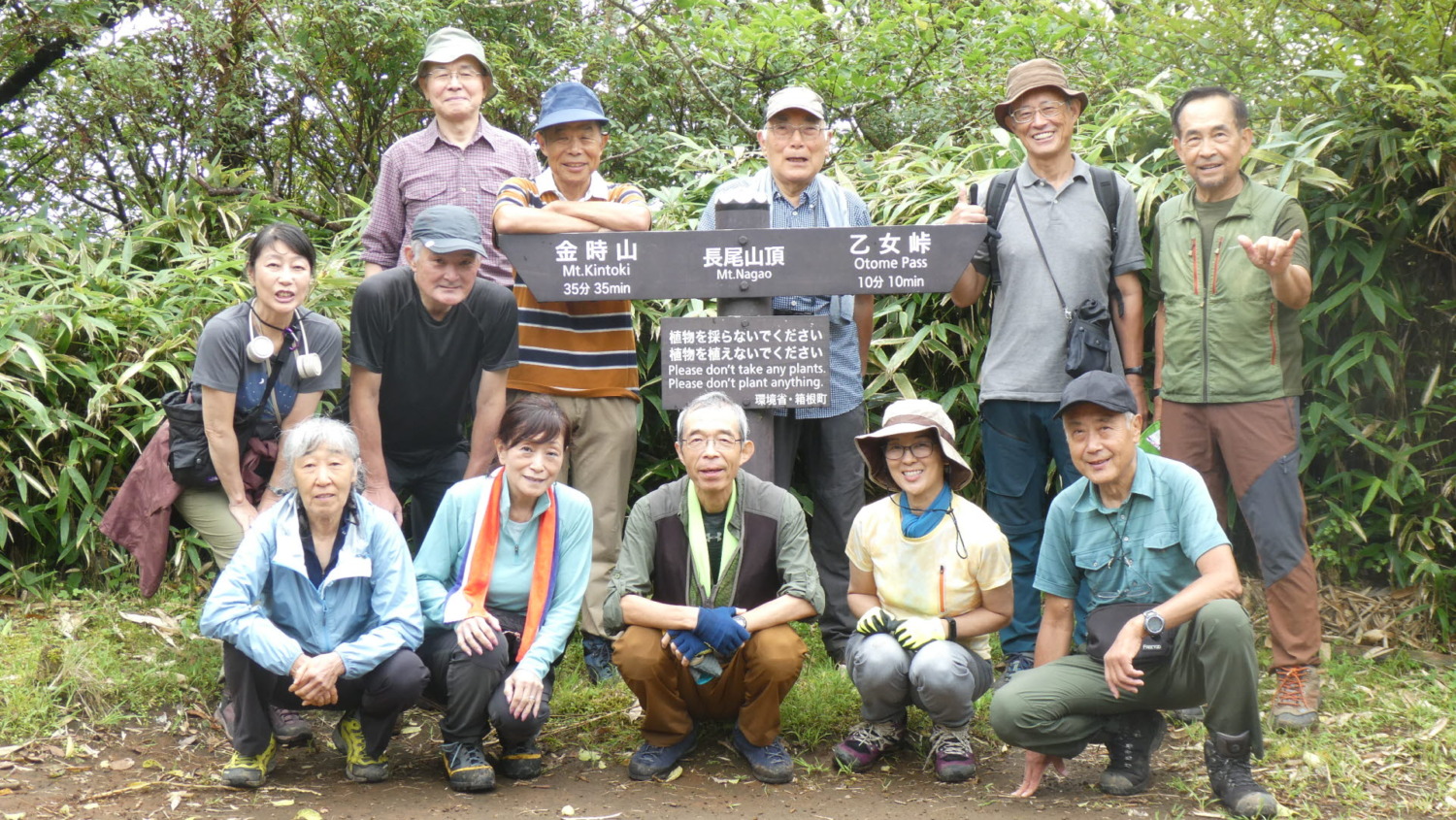 - 10:46 小雨になった乙女峠で記念撮影(参加者は12名)