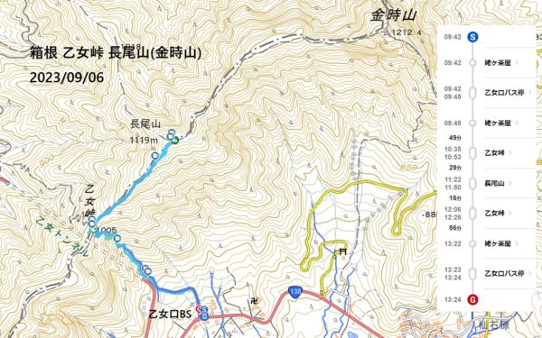 - 箱根・乙女峠ー長尾山ルート図