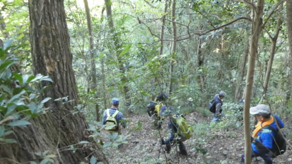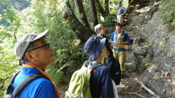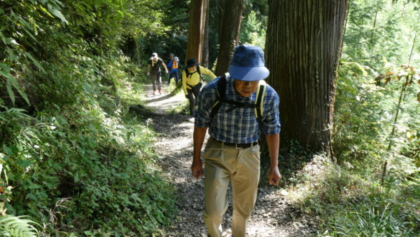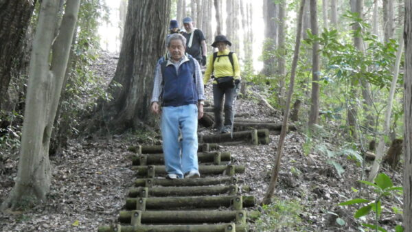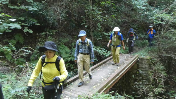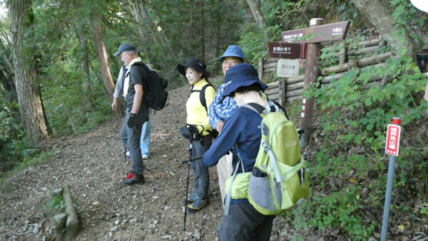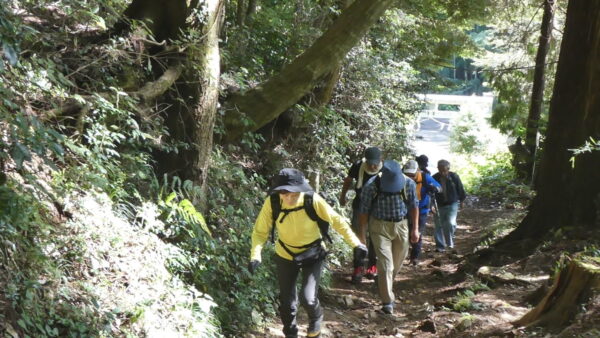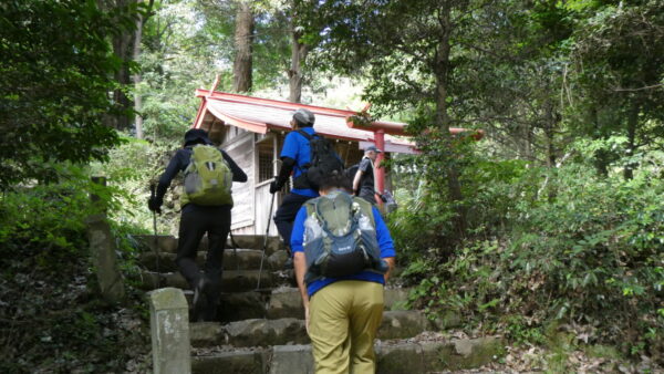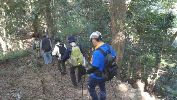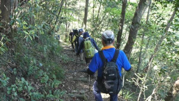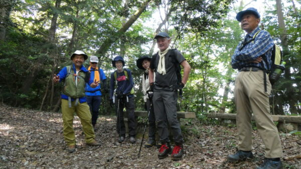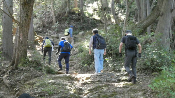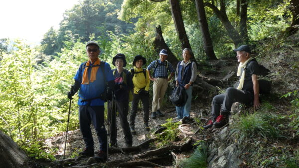2023年10月山行は「今熊山・金剛の滝」で参加者は8名(新会員1名)でした。「武蔵五日市駅」行きの路線 バスで「今熊山登山口」で下車。新会員の紹介・挨拶後山行を開始しました。バス停から25分程一般道を歩き今熊神社里宮に到着、神社に参拝&記念撮影後、今熊山山頂を目指して登山を開始しました。登山道は杉林の中で整備されているが、急階段や険しい岩むき出しの道など、変化に富んだ標高差220mの急勾配の道でしたが、展望台からの眺望&休息もできて全員元気に踏破しました。