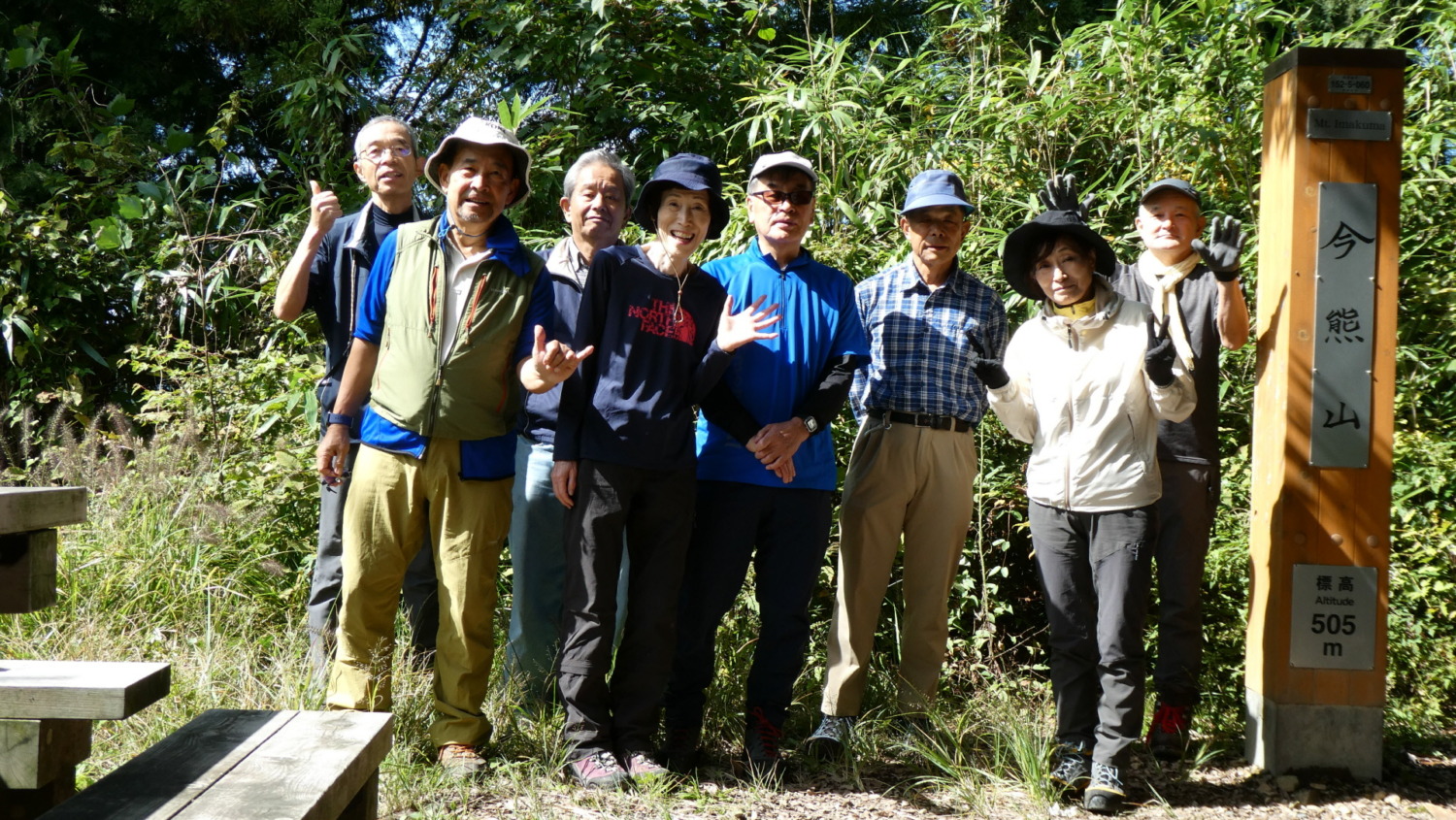 - 12:15 今熊山頂上(505m)で登頂記念撮影