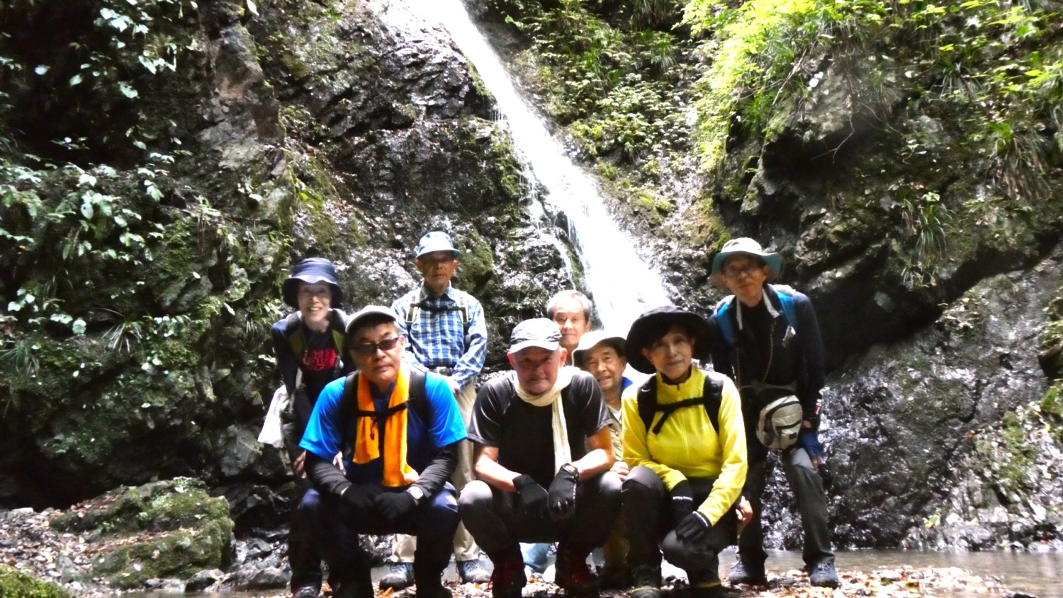 - 金剛の滝(落差約18m)で記念撮影