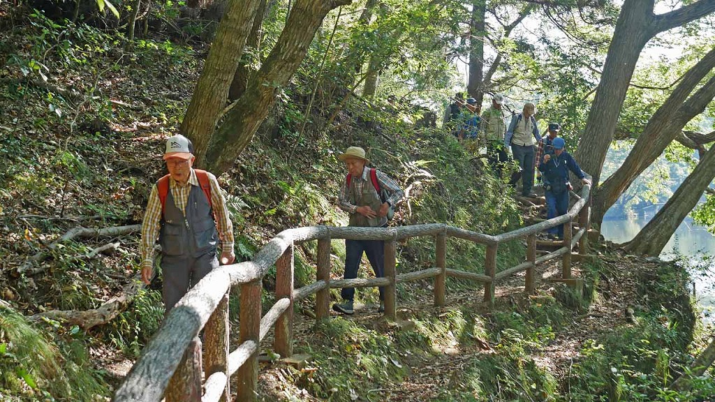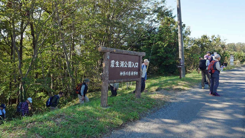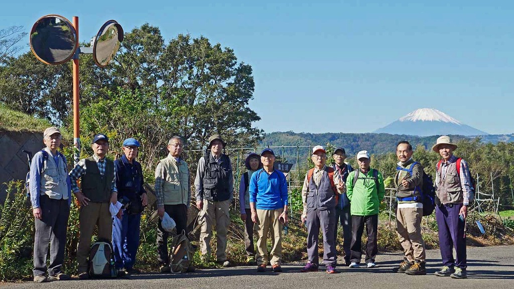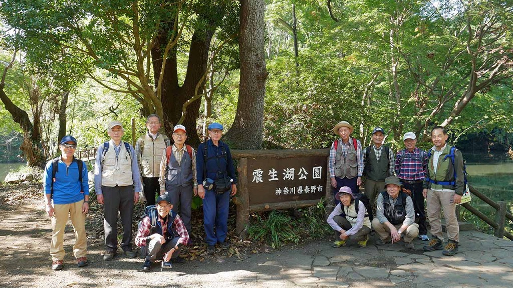 11月6日(水)小田急・秦野駅に集合(参加人数13名)、南口から渋沢丘陵に向け山行を開始しました。当日は雲一つない快晴に恵まれ、山頂に雪を冠った美しい富士山を展望できました。丘陵部を上り震生湖を見物した後、渋沢丘陵ハイキングコースを進み頭高山をめざしました。
