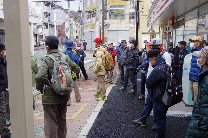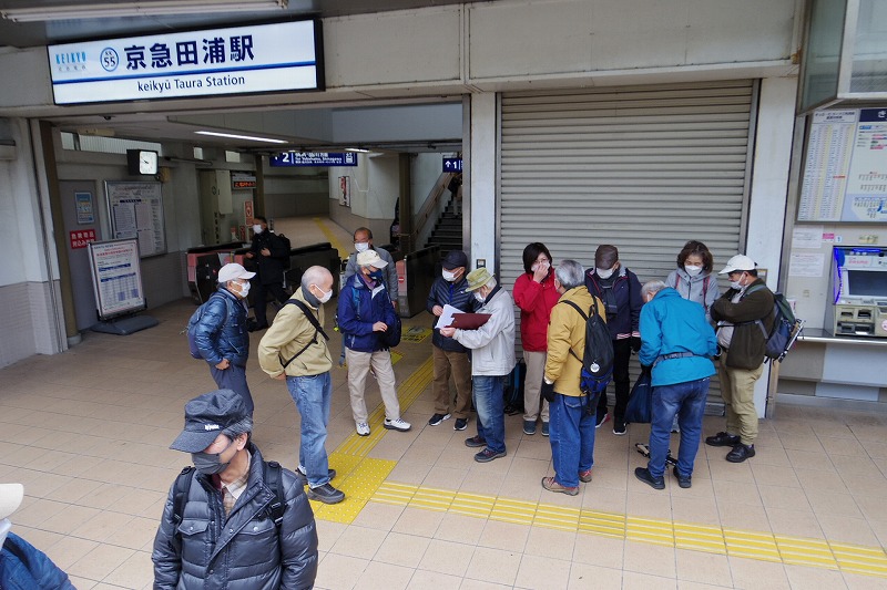 京急田浦駅改札前に午前10時に集合。受付を済ませ、近くのコンビニに移動し、昼食調達後、コンビニ前で新会員と久々の参加者の自己紹介の後、世話役の挨拶、コース説明を聞いてスタート。