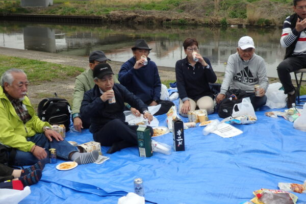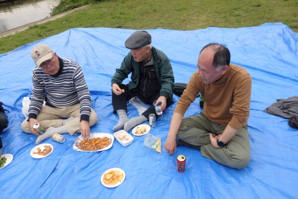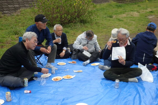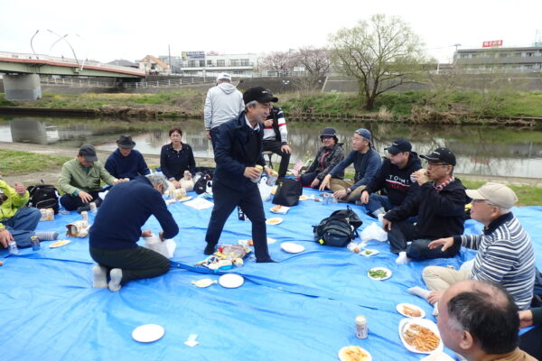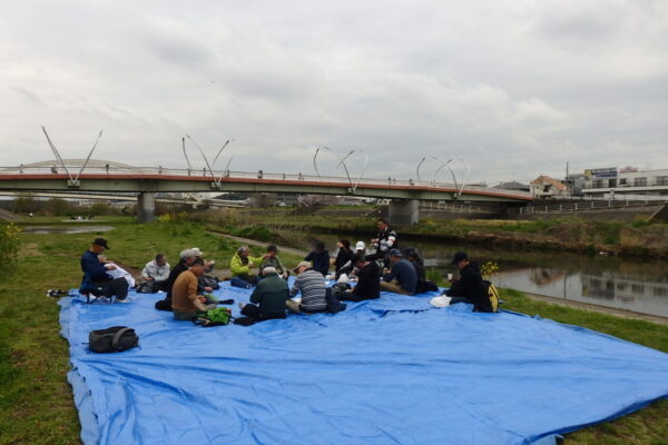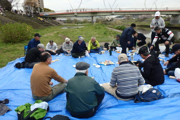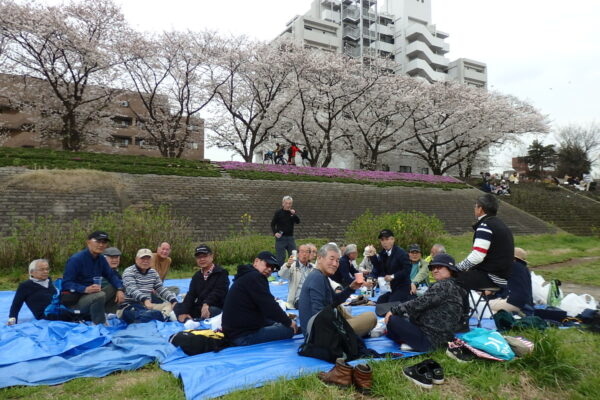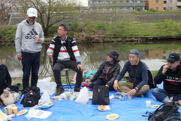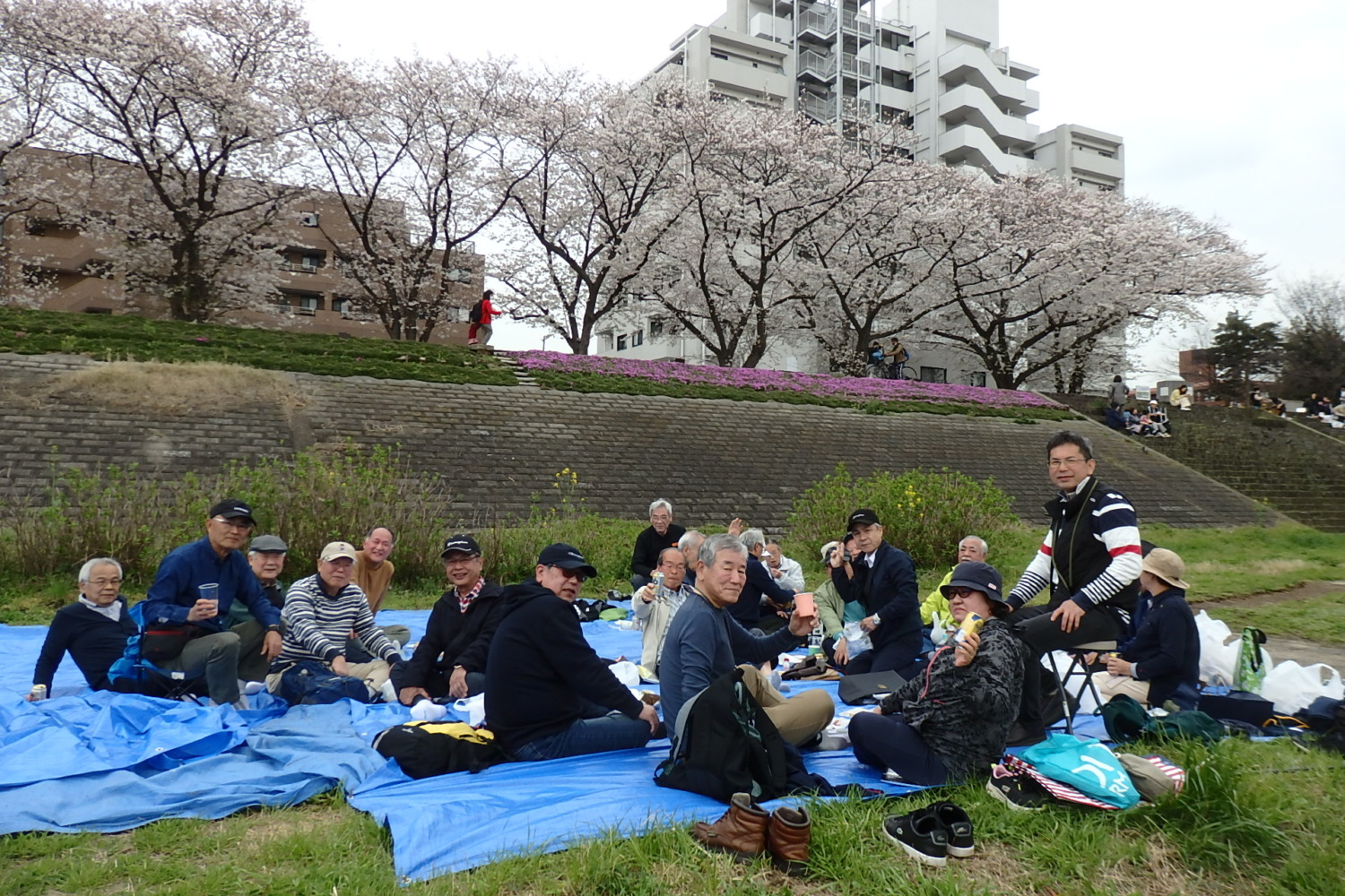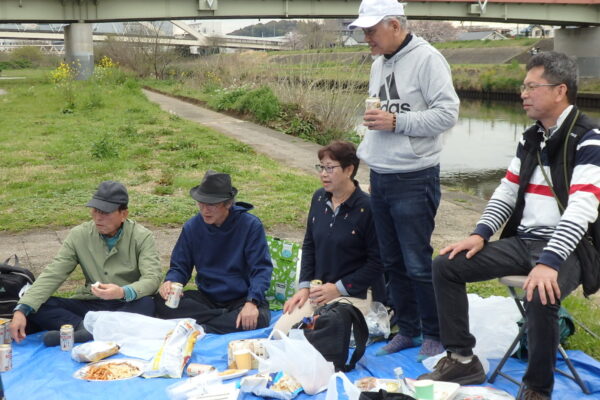 2024(令和6)年 4月4日(木)菜種梅雨の切れ間、天候に恵まれ鶴見川河川敷にて花見を行いました。