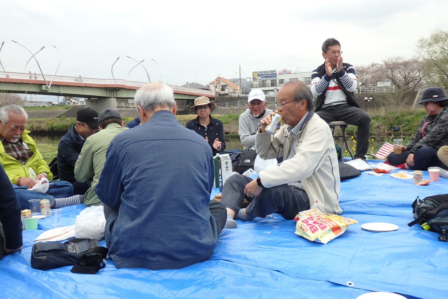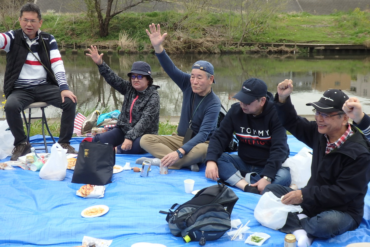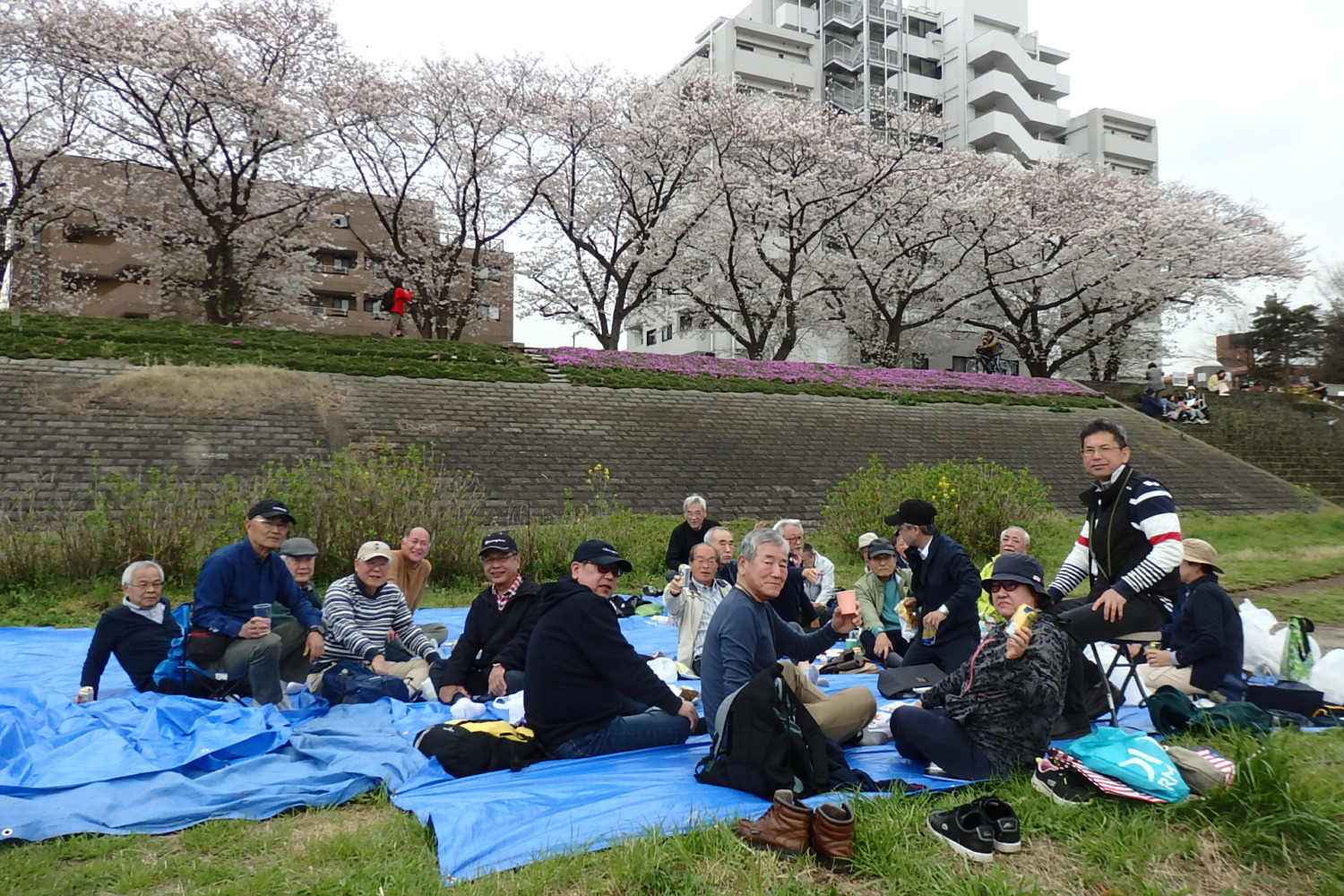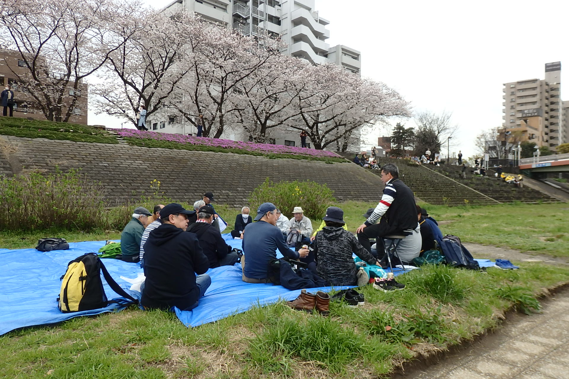 2024(令和6)年 4月4日(木)菜種梅雨の切れ間、天候に恵まれ鶴見川河川敷にて花見を行いました。