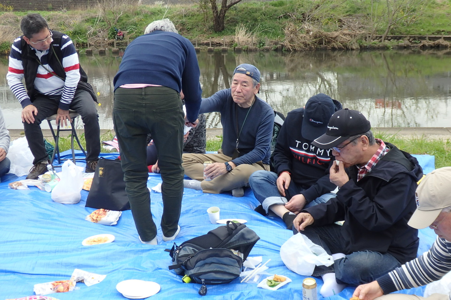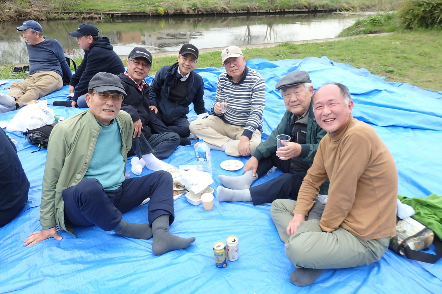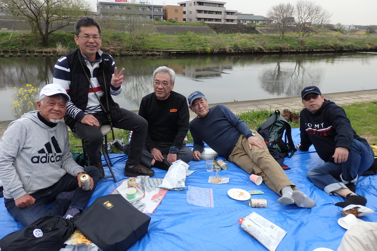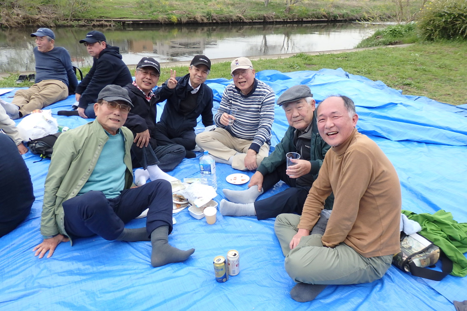 2024(令和6)年 4月4日(木)菜種梅雨の切れ間、天候に恵まれ鶴見川河川敷にて花見を行いました。