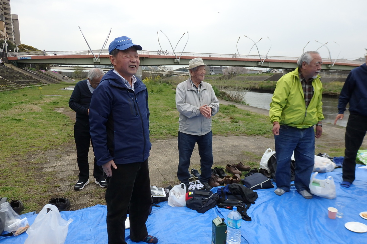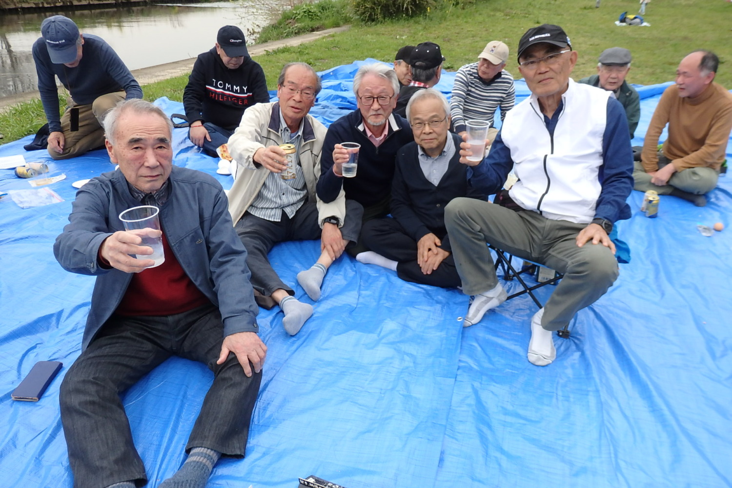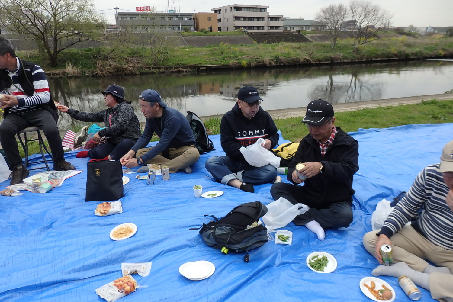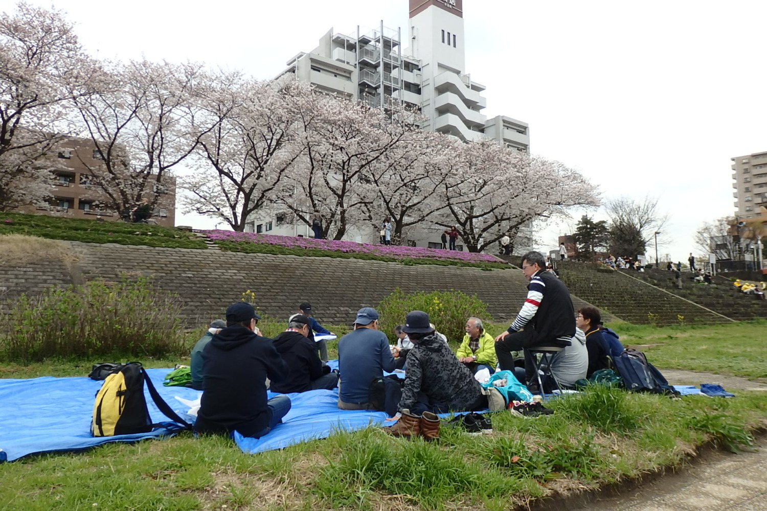 2024(令和6)年 4月4日(木)菜種梅雨の切れ間、天候に恵まれ鶴見川河川敷にて花見を行いました。