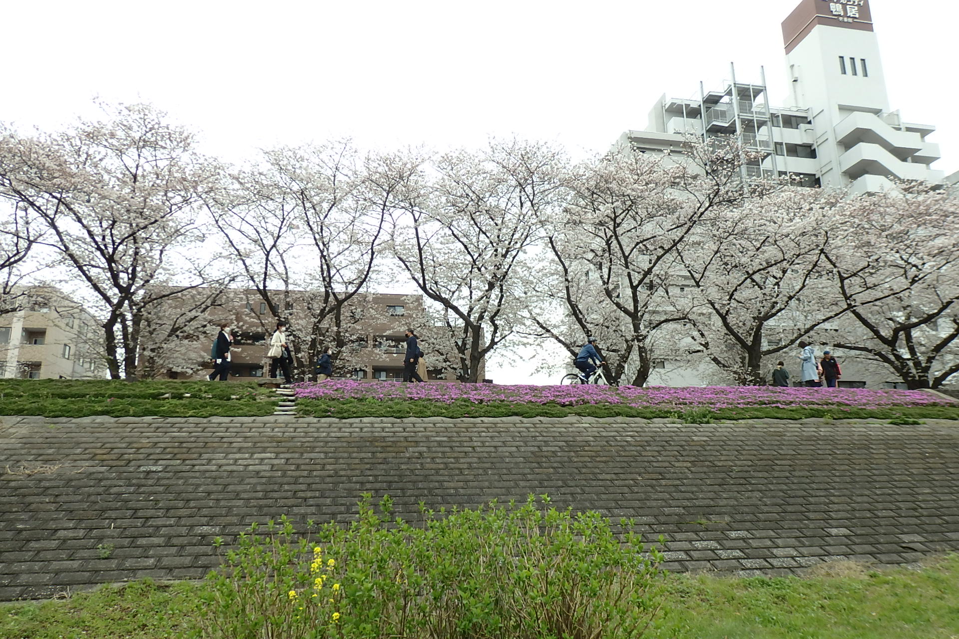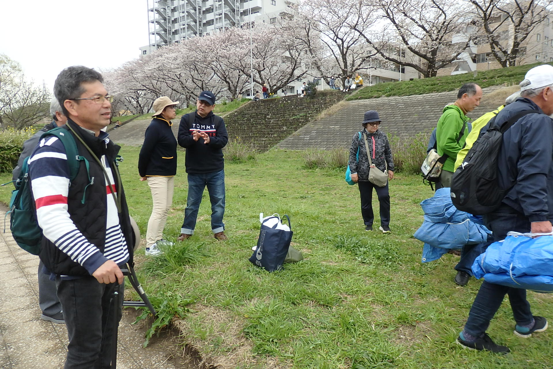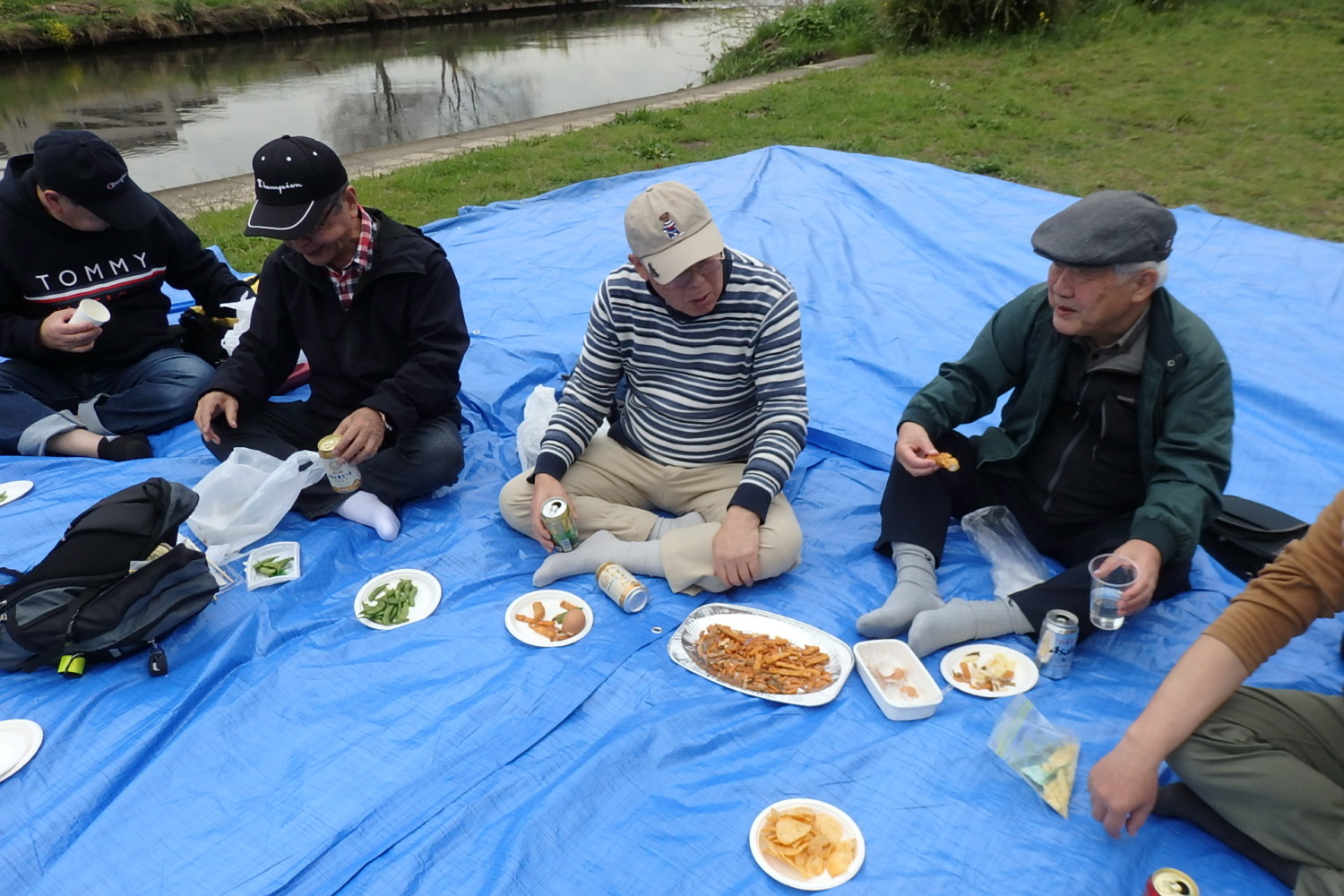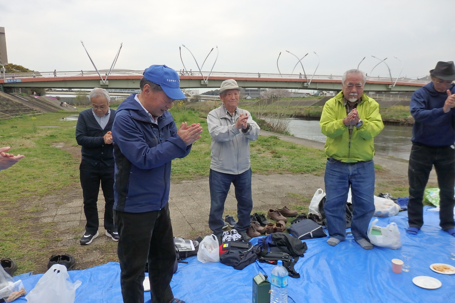 2024(令和6)年 4月4日(木)菜種梅雨の切れ間、天候に恵まれ鶴見川河川敷にて花見を行いました。